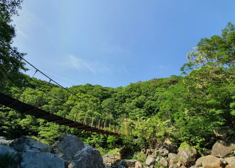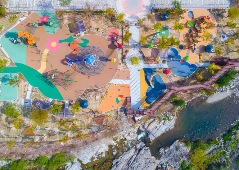 <펜션에서 5분거리> 공기좋고 물 맑은 청정지역 표충사 초입에 위치한 우리아이 마음숲놀이터, 스파이넷타워, 나무집놀이터, 더블돔플레이, 무지개그네, 스카이워크우디등 경남...